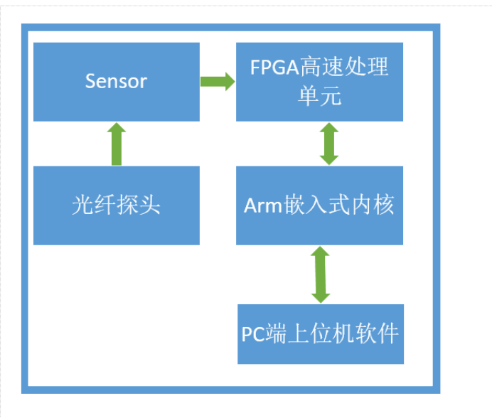 立儀科技智能嵌入式控制器由arm嵌入式內核、FPGA高速處理單元、光纖探頭、sensor和PC端上位機軟件這五大組成。