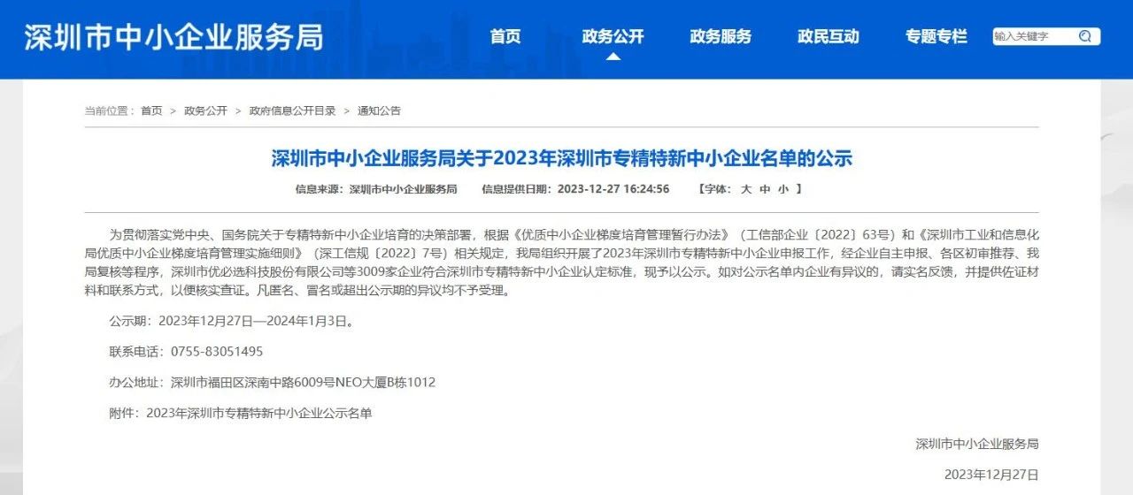 12月27日,深圳市中小企業(yè)服務(wù)局公示了“2023年深圳市專精特新中小企業(yè)”名單。深圳立儀科技有限公司憑借在技術(shù)研發(fā)、產(chǎn)品創(chuàng)新、市場(chǎng)拓展等方面取得的突出成績(jī),成功獲評(píng)“2023年深圳市專精特新中小企業(yè)”。
