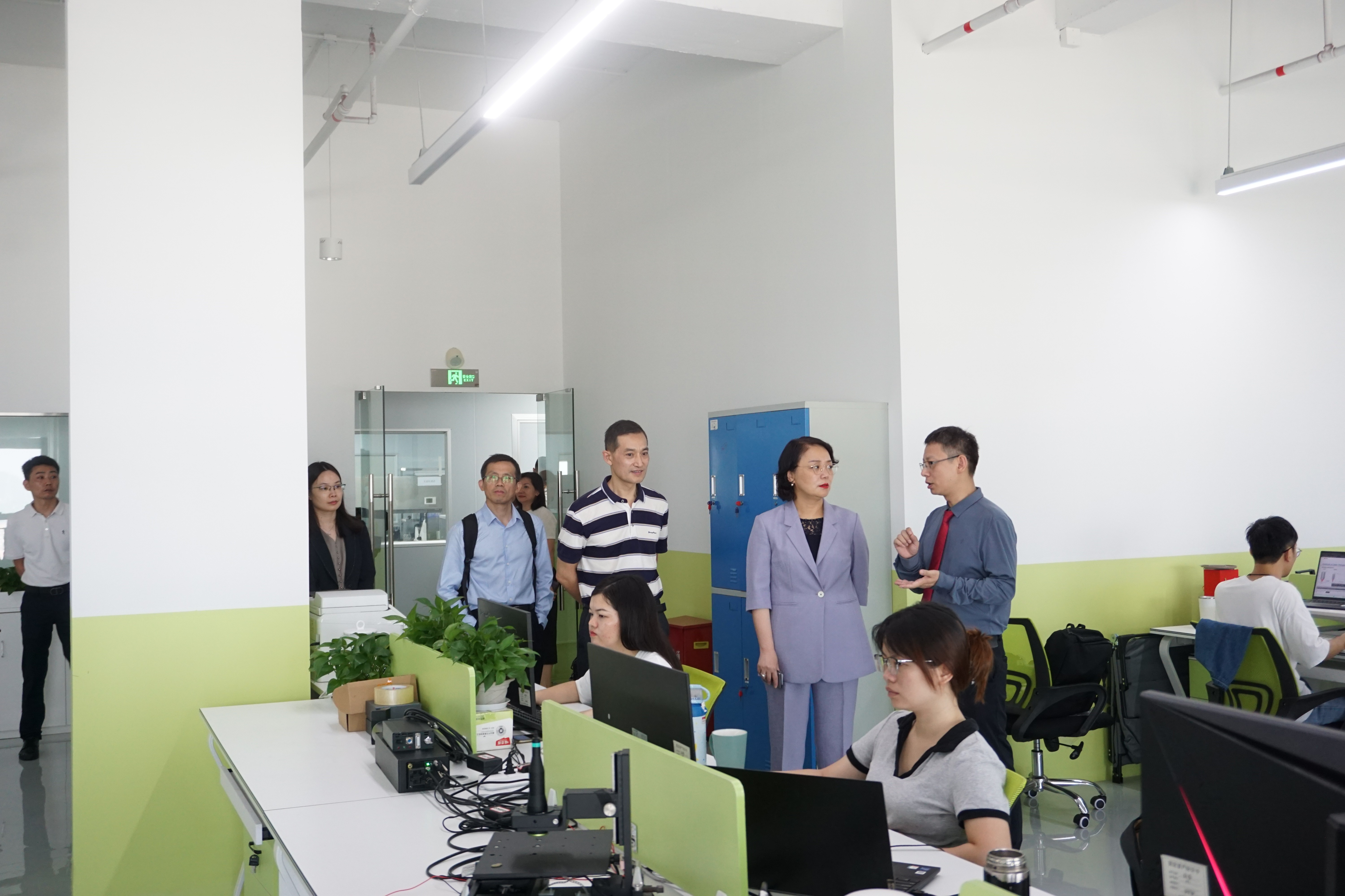 隨后,參觀團進入研發辦公室,總經理劉杰波詳解介紹了研發生產的相關情況。彭穎副區長對深圳立儀科技有限公司在科技研發、創新能力等方面取得的成績給予了高度評價。