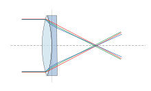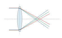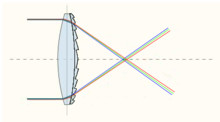 一側單透鏡的色差導致不同波長的彩色光的不同焦距