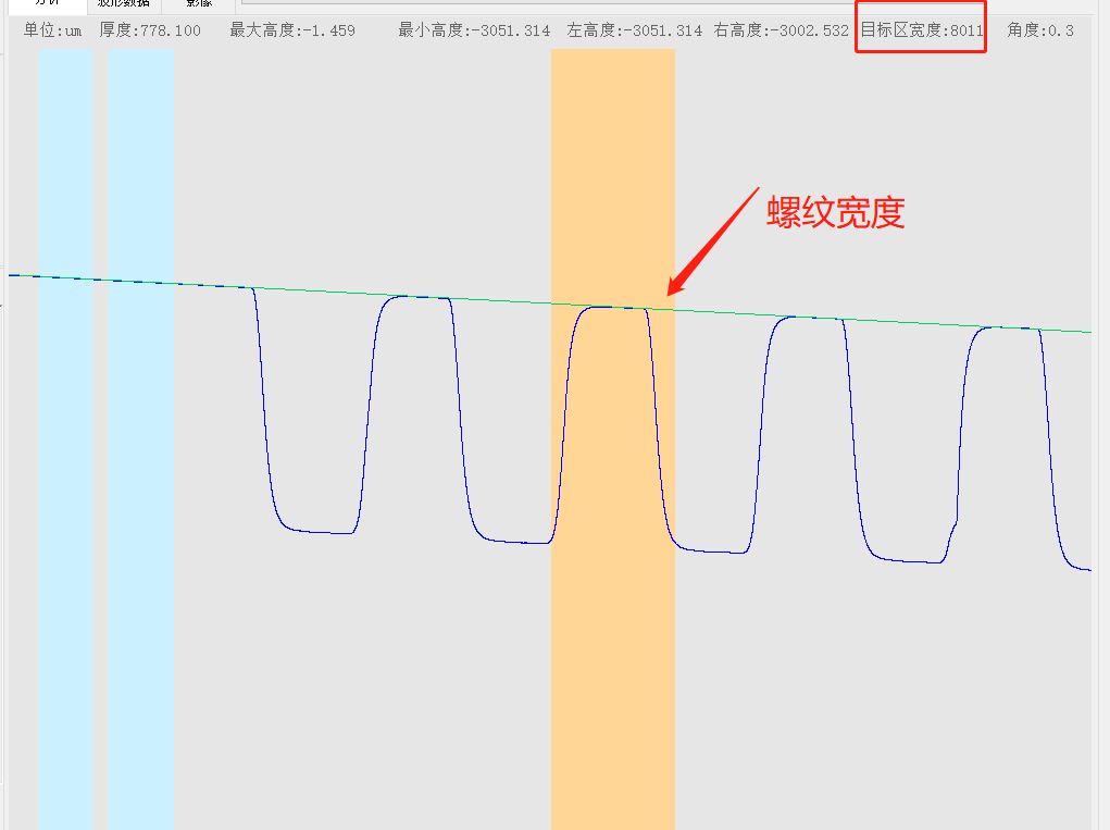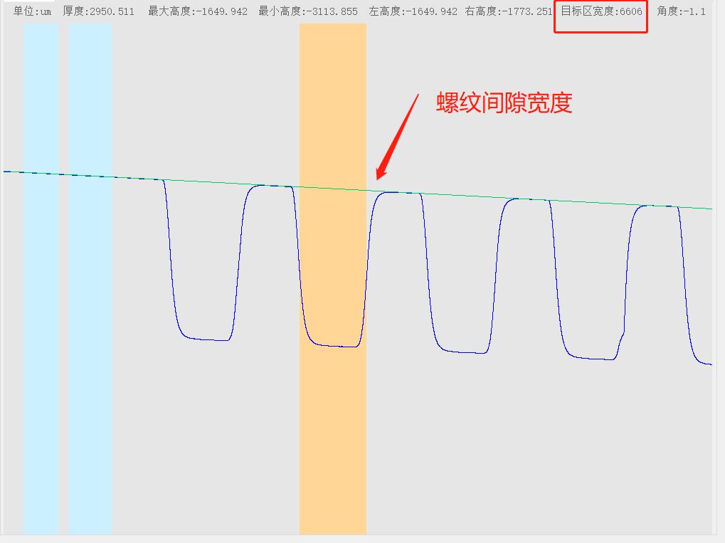 本次測試采用立儀科技D35A18R4S25-90鏡頭掃描樣品內部螺紋上表面輪廓,鏡頭動態掃描測試,采樣頻率3000Hz/s掃過螺紋上表面輪廓,30次重復精度極差為8.5um,90度鏡頭量程范圍8mm可覆蓋檢測螺紋深度寬度。采用非接觸式測量的方式,無損樣品。