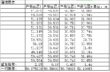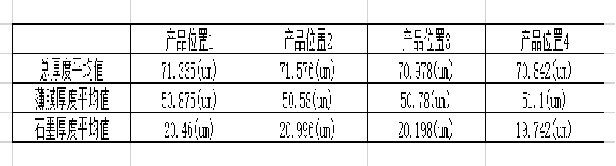2、產(chǎn)品4個位置總厚度的平均值-薄膜厚度的平均值=4個位置石墨平均厚度