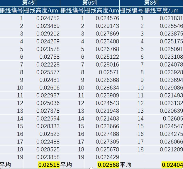 測試方法:單探頭在二維運動平臺上進行掃描測量——將需要掃描測量的硅片選擇三個區(qū)域進行標記,用光譜共焦單探頭單側測量(柵線厚度是柵線高度-基底的高度差),掃描過程中得到柵線的輪廓圖,柵線厚度=柵線高度與硅片基底的高度差。