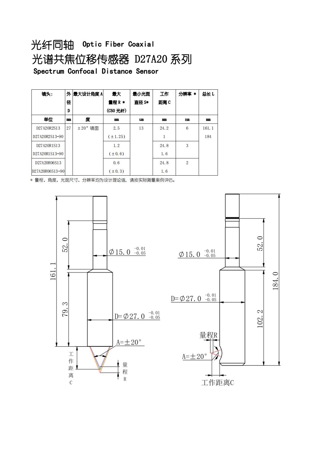 直徑27mm,適中尺寸可滿足大多數安裝場景各性能參數較為平均,可適用于大多數應用場景,D27系列中兼顧角度,量程,光斑大小和測量精度的一款鏡頭,同時成本上控制較好,是D27系列中性價比最高的一款型號,此款擁有90度出光鏡頭版本,可用于測量側面尺寸,孔內壁尺寸特性等