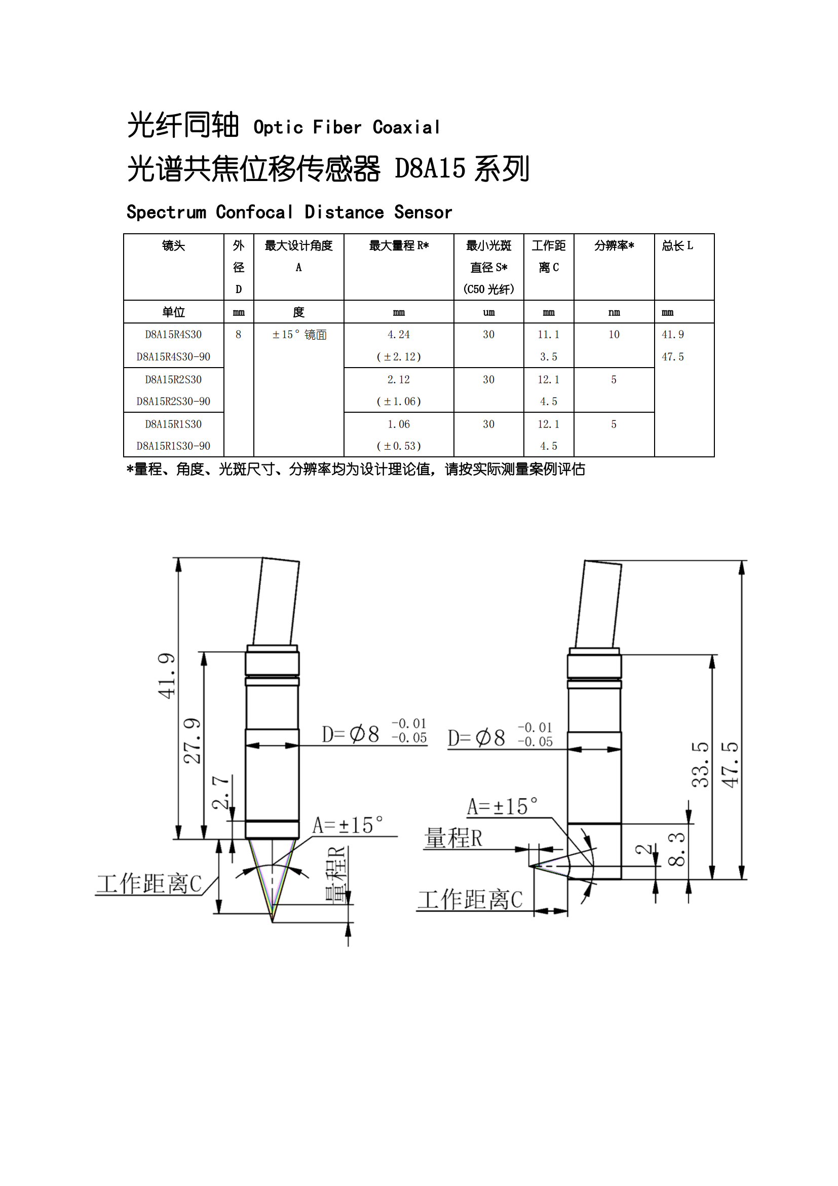 鏡頭:外徑D:8毫米 設(shè)計(jì)角度±15°.,其中-90°側(cè)邊出光
