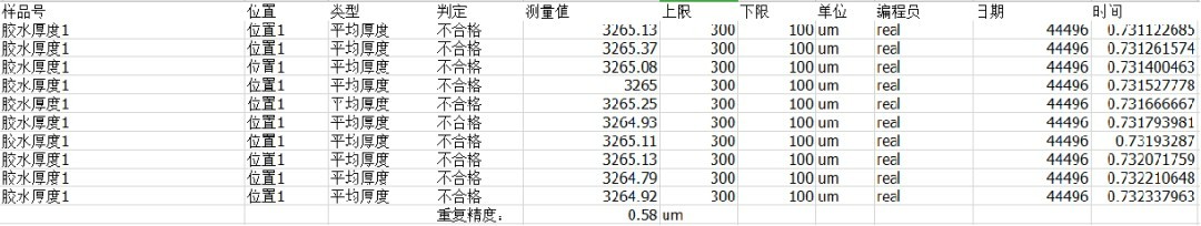 2、重復測試穩定性好,10次測試重復精度為0.58um。